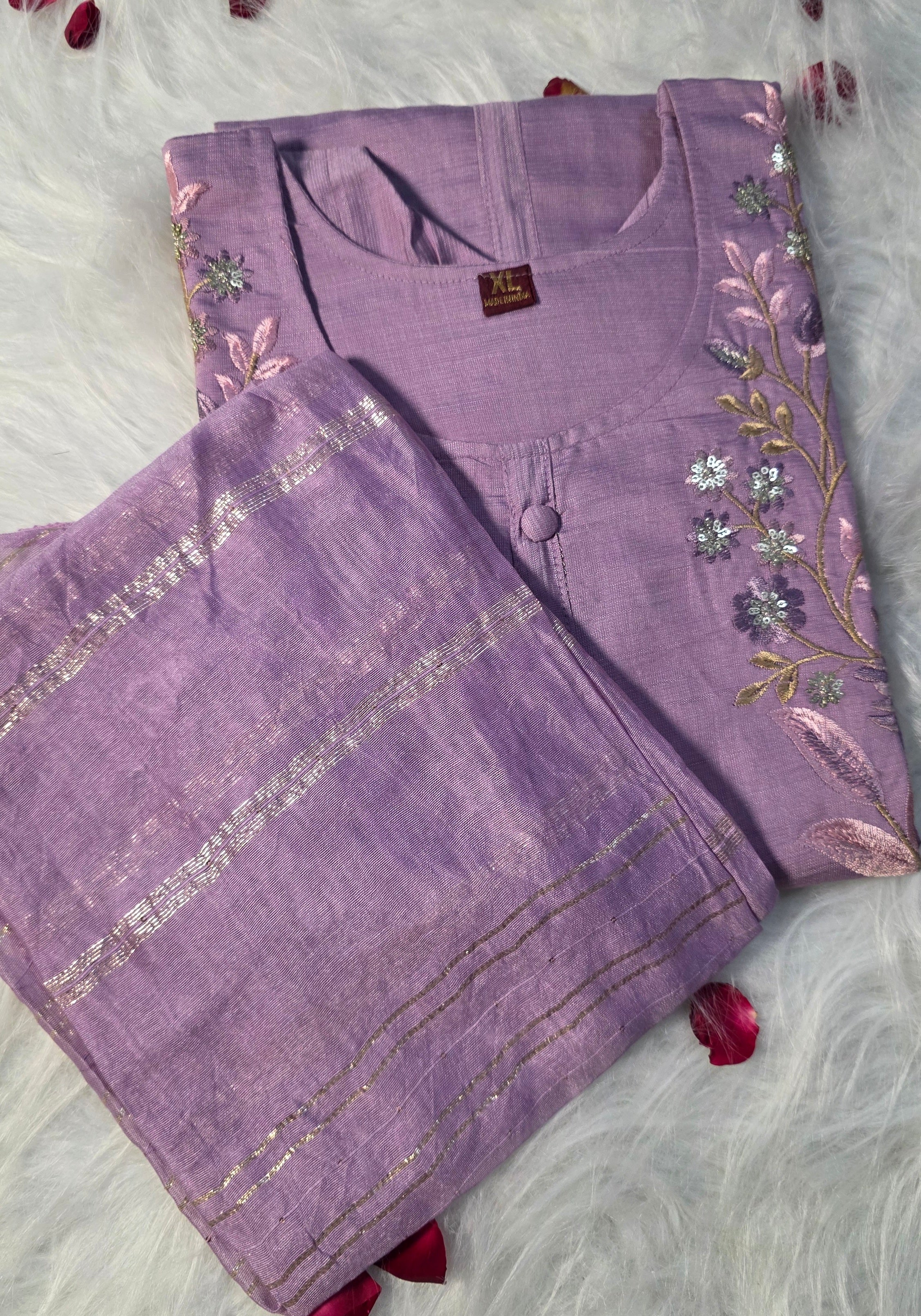 Don't miss out on this unique blend of tradition and modernity. Grab your 🌸 Lavender Embroidered Kurta Set now for a stylish update!