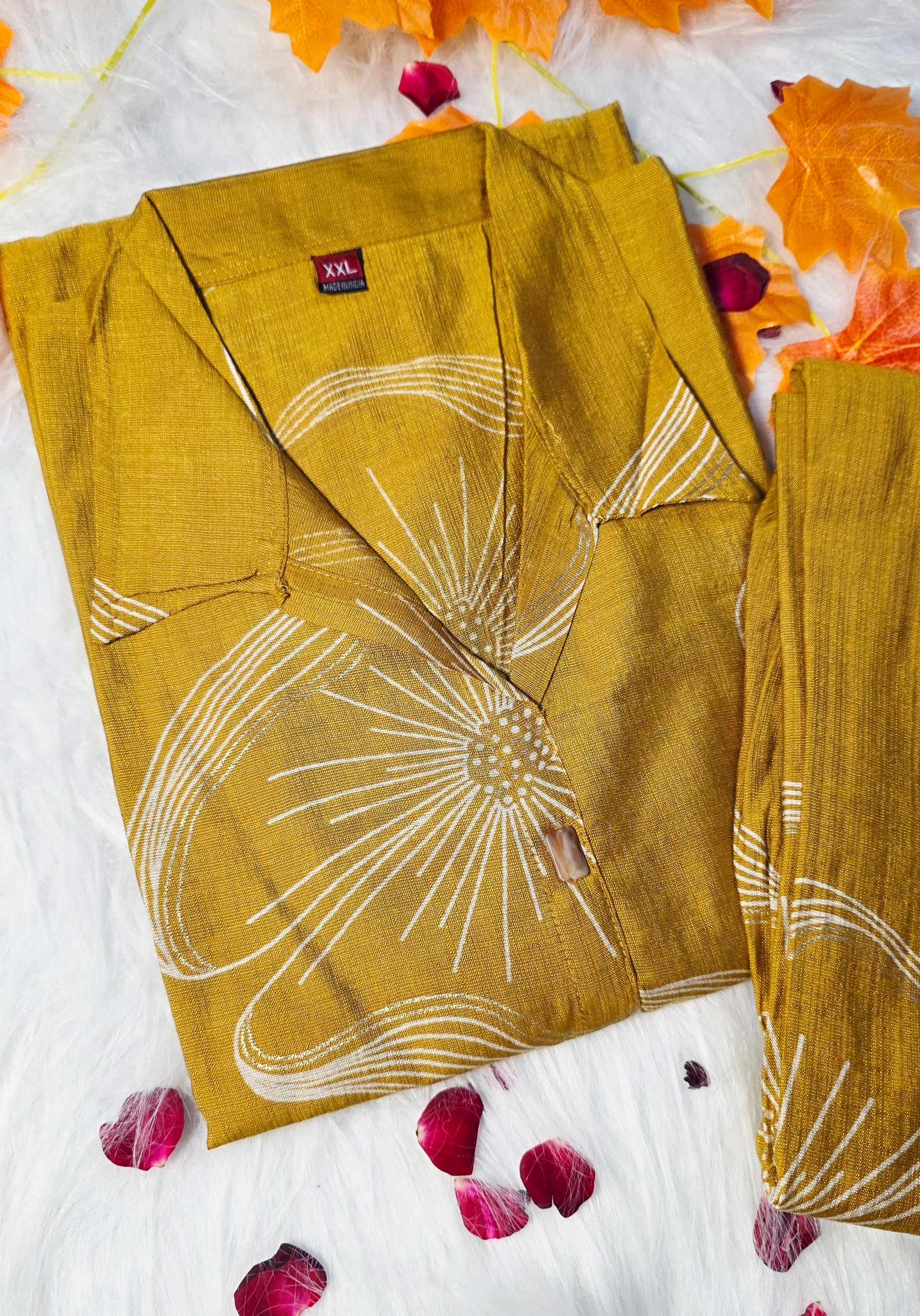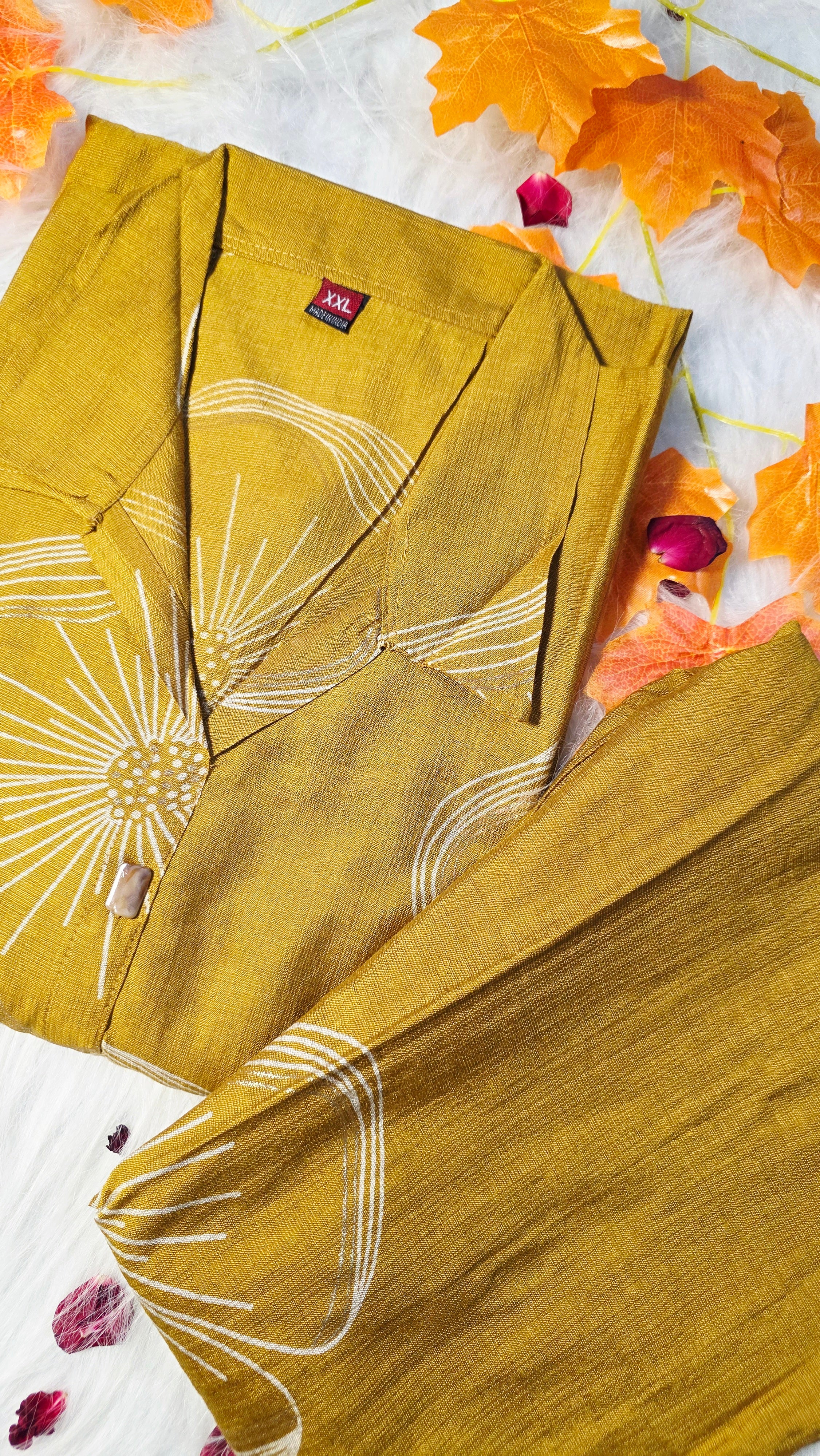 Add our Mustard Yellow Cotton Suit Set to your collection and embrace a journey of elegance and comfort. Perfect for any occasion, this is a statement piece you won't want to miss!