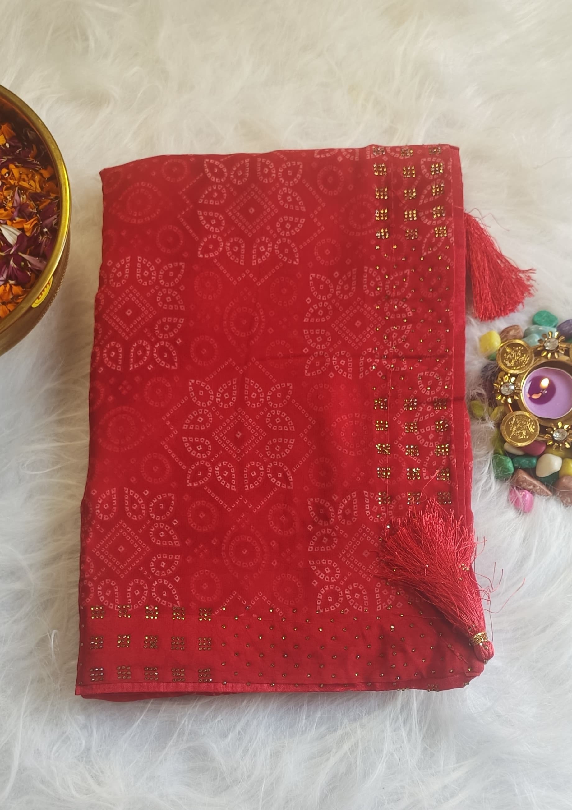 Regal Red Bandhani Silk Saree with Zari Detailing